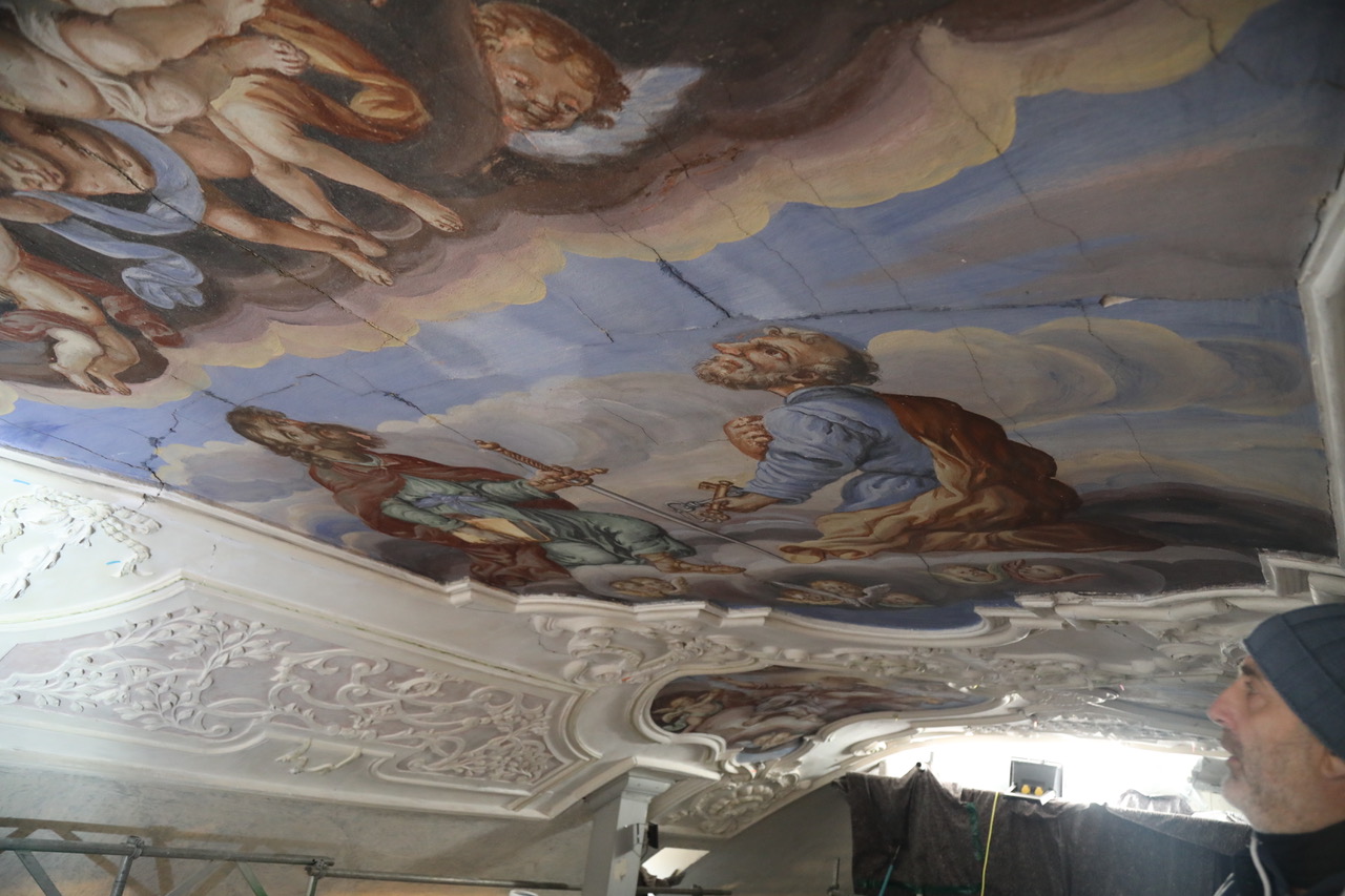 Die Kirche St. Peter und Paul stammt aus dem Beginn des 14. Jahrhunderts. 2022 wurde das Dach des Kirchenschiffs grundhaft saniert, was dringend erforderlich war, hatten doch Wassereintritte die Gewölbedecke im Inneren mit ihren wunderschönen Gemälden bereits beschädigt. Ein Netz hatten die Kirchenbesucher über Jahre vor eventuell herabfallenden Teilchen geschützt.