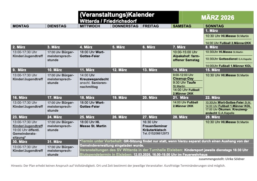 Veranstaltungsübersicht Witterda