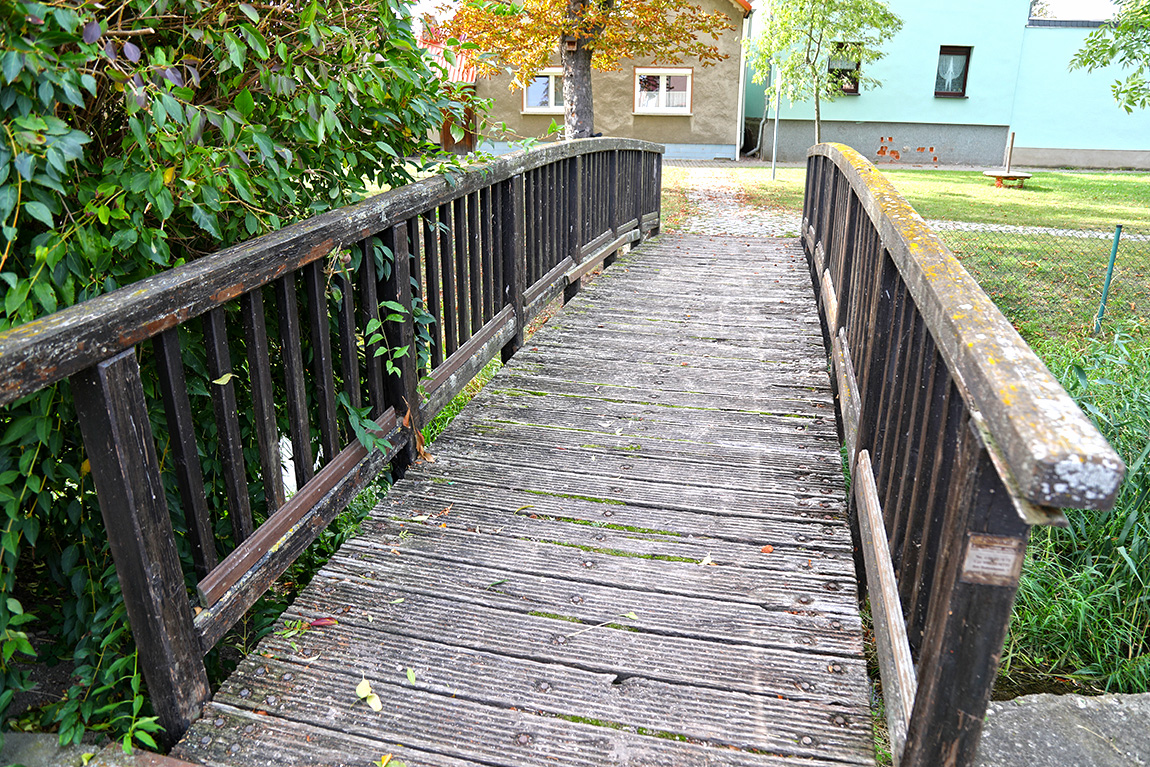 Die Fußgängerbrücke über die Mahlgera in Andisleben, die die August-Bebel-Straße mit dem kleinen Park und seinem Spielplatz verbindet, wird erneuert.
