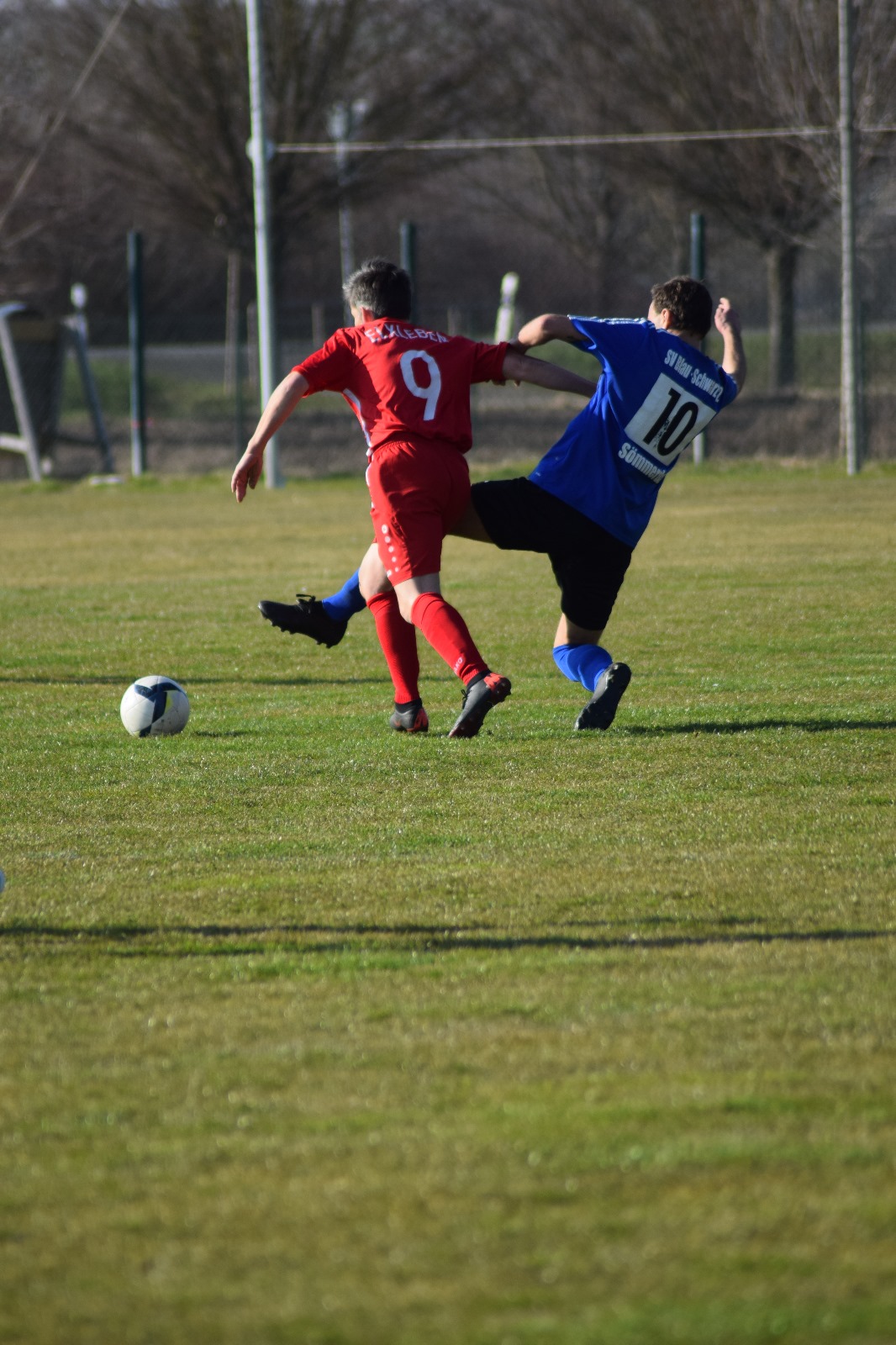 Die dritte Mannschaft der SpG stand vor einer anspruchsvollen Aufgabe, als sie am Samstag, 9. März, den SV Blau Schwarz 02 aus Sömmerda empfing. Obwohl sie als Außenseiter in das Spiel gingen, zeigten sie von Anfang an beeindruckenden Kampfgeist. Bereits in der ersten Minute erzielten sie durch Nils Ackermann einen frühen Führungstreffer. Trotz weiterer vielversprechender Aktionen gelang es den Gästen aus Sömmerda, das Spiel zu drehen und mit einem 2:4 Sieg nach Hause zu fahren. Dennoch war die Leistung der SpG-Dritten keineswegs entmutigend. Spieler, Fans und Trainer Robert Röder waren zufrieden mit der gezeigten Leistungssteigerung und dem Einsatz auf dem Platz.