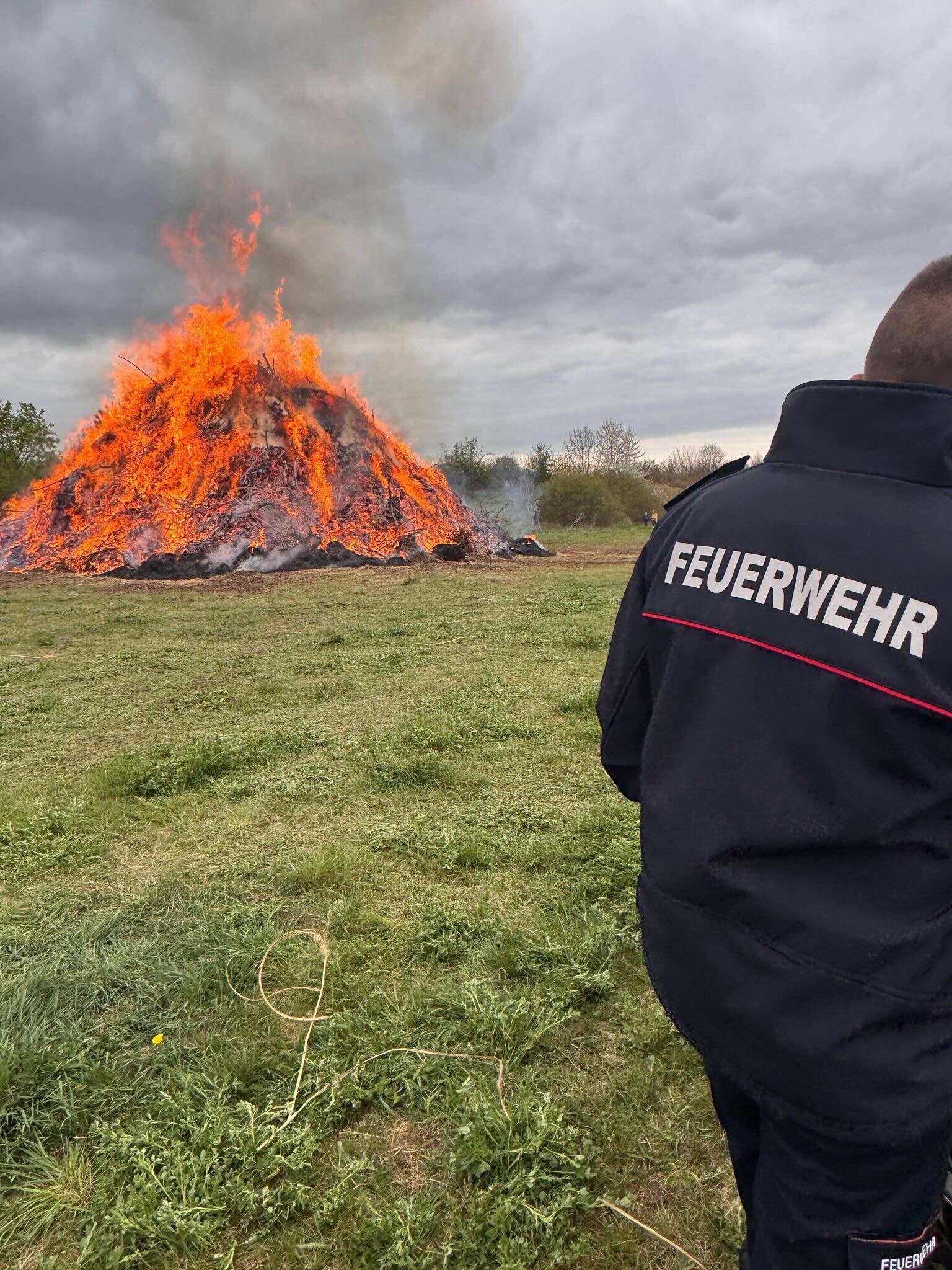 Und nicht nur das leisteten die Kameradinnen und Kameraden: Von 9 Uhr morgens bis 1 Uhr in der Nacht waren rund 30 Helfer im Einsatz, um das Osterfeuer gleichermaßen attraktiv wie sicher zu gestalten.