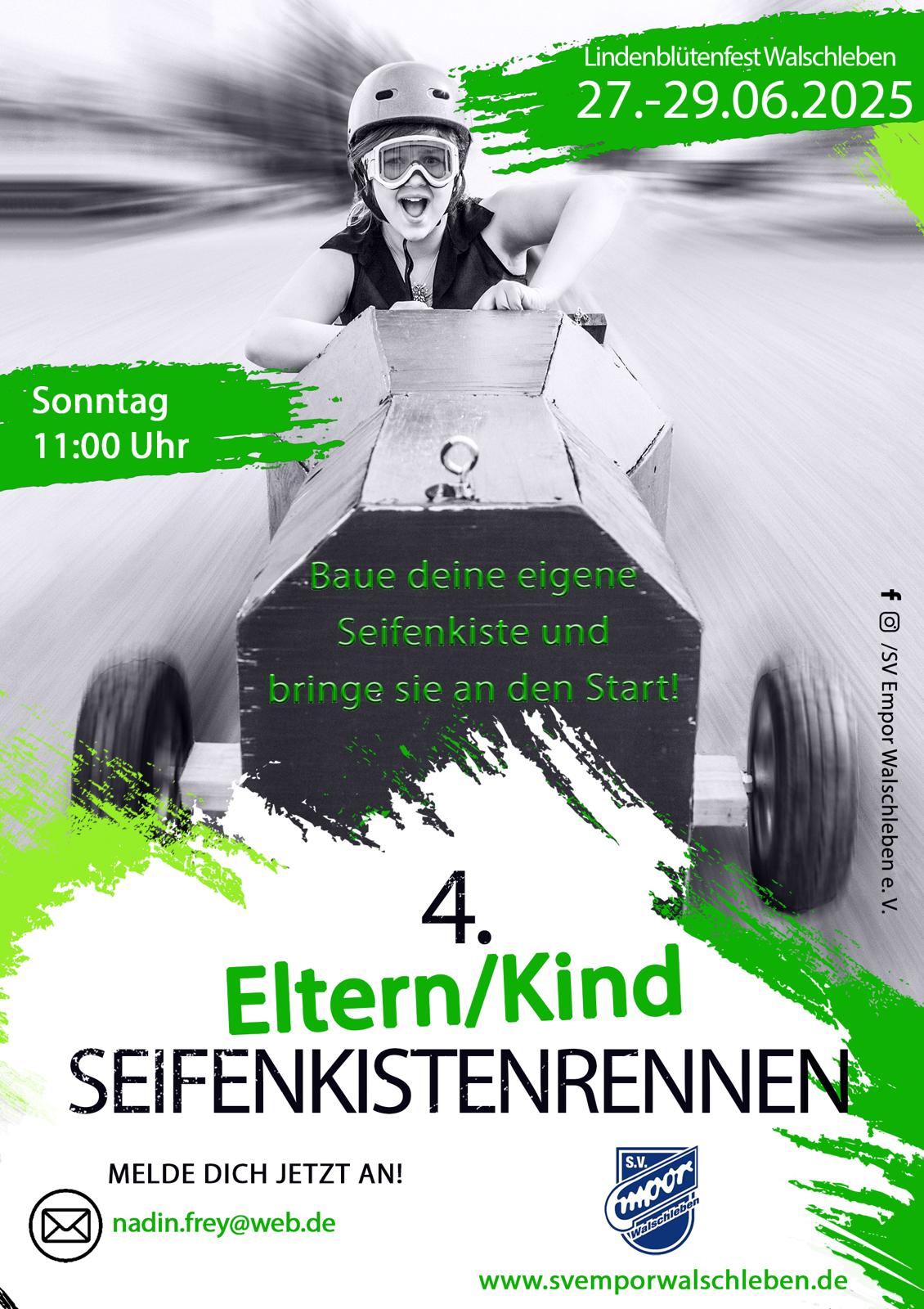 Bereits den 10. Geburtstag feiert auch der Lindenblüten-Cross und zum 4. Male kann man mit Eigenkonstruktionen am Seifenkistenrennen teilnehmen. Noch eineinhalb Wochen ist es bis zum Event-Wochenende. Anmeldeschluss für den Lindenblüten-Cross ist der 23. Juni.