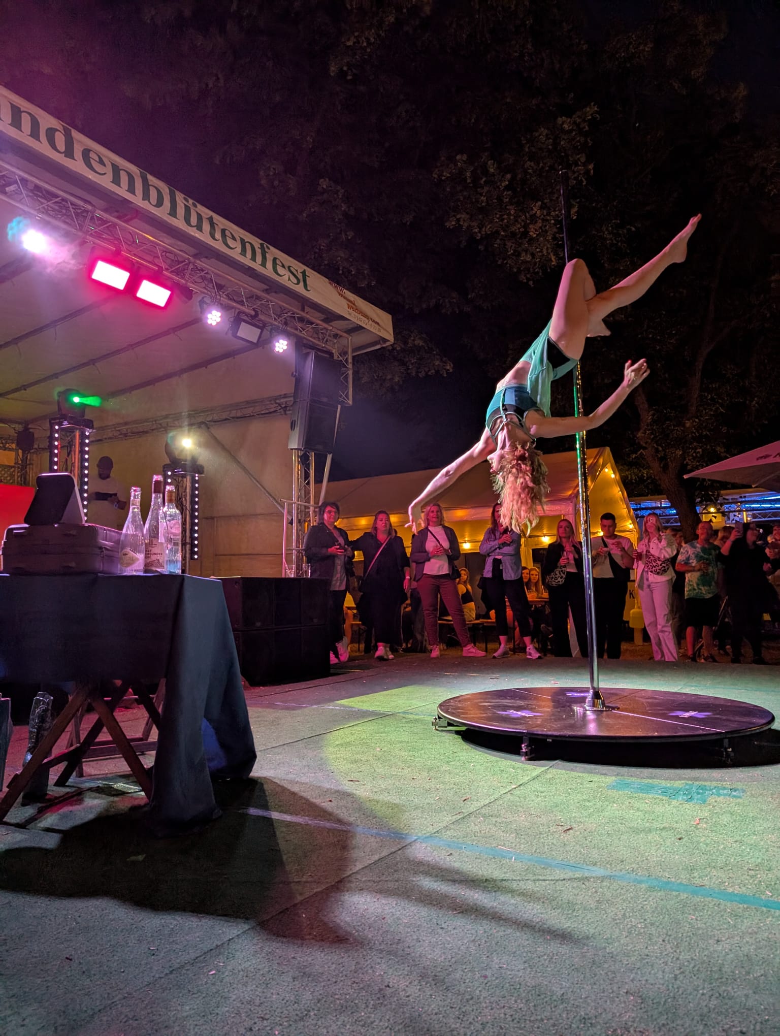 Die Lindenstraße in Walschleben gibt dem traditionsreichen Blütenfest gleichermaßen Namen und Rahmen. Unter dem dichten Blätterdach der Linden fanden die zahlreichen Besucher von Freitag bis Sonntag schattige Plätze, konnten ein abwechslungsreiches Bühnenprogramm erleben und das Tanzbein schwingen – zu Discoklängen oder Live-Musik. Die Kinderanimation stieß auf Begeisterung, sei es beim Bungee-Trampolin oder beim Jonglieren, beim Nägel-ins-Holz-Schlagen, bei Spielen vor der Festbühne oder beim Karussel-Fahren u.a.m.