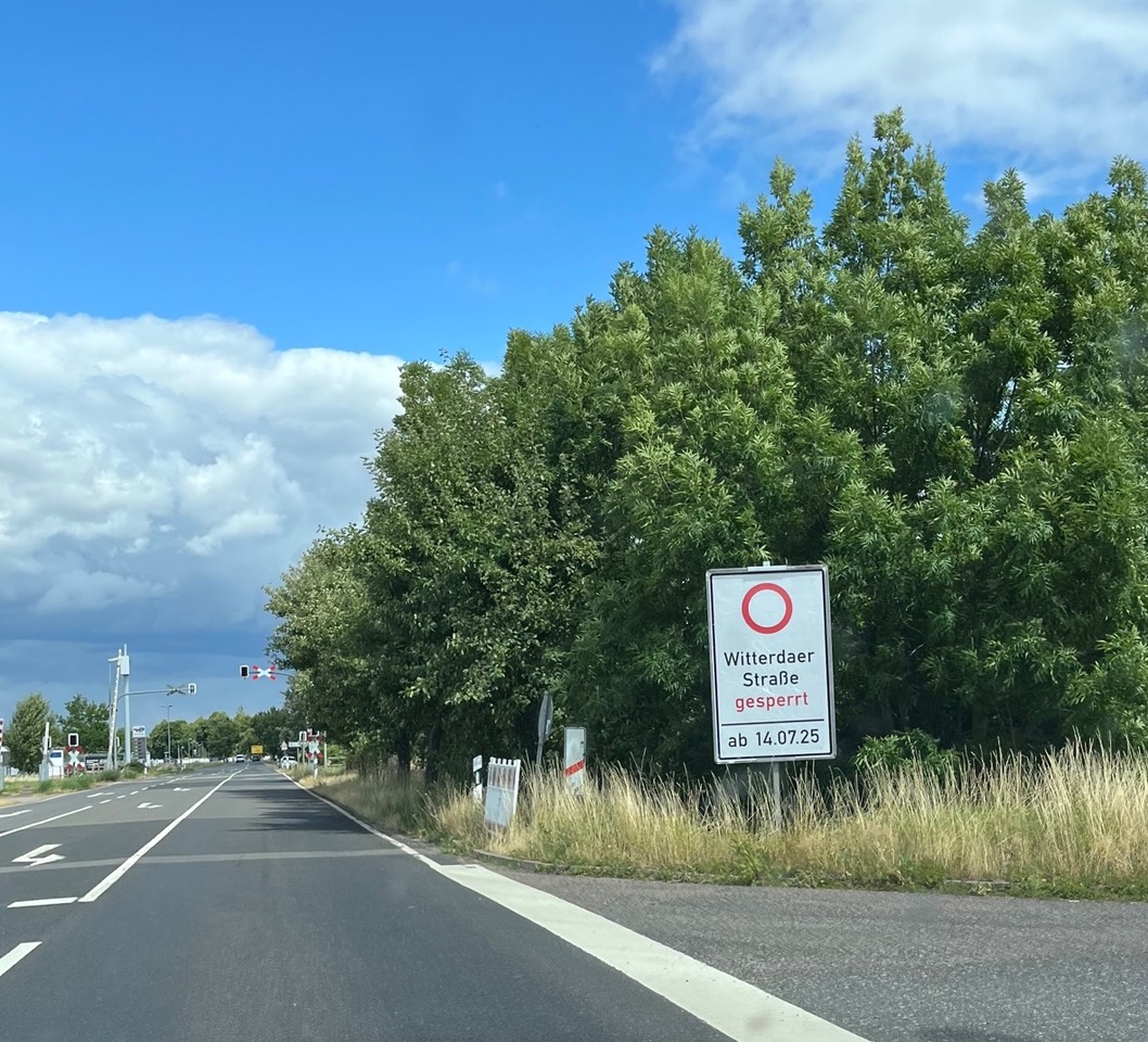 Ab Montag, 14. Juli, bis voraussichtlich 23. Juli, wird aufgrund von Bauarbeiten der Bahnübergang in Elxleben nahe dem Einrichtungshaus gesperrt und mit ihm der Abschnitt der Kreisstraße 20 (Witterdaer Straße). Die Sperrung ist bereits vorbereitet, entsprechende Schilder und Barken sind bereitgestellt.