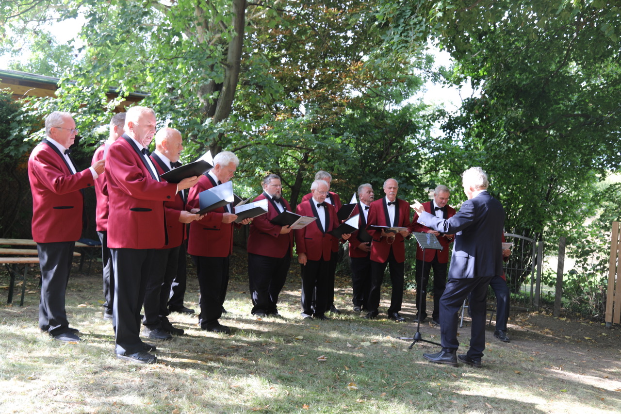 Chorleiter Holger Pless dirigierte den Kanon, gesungen vom Chor und dem Publikum.