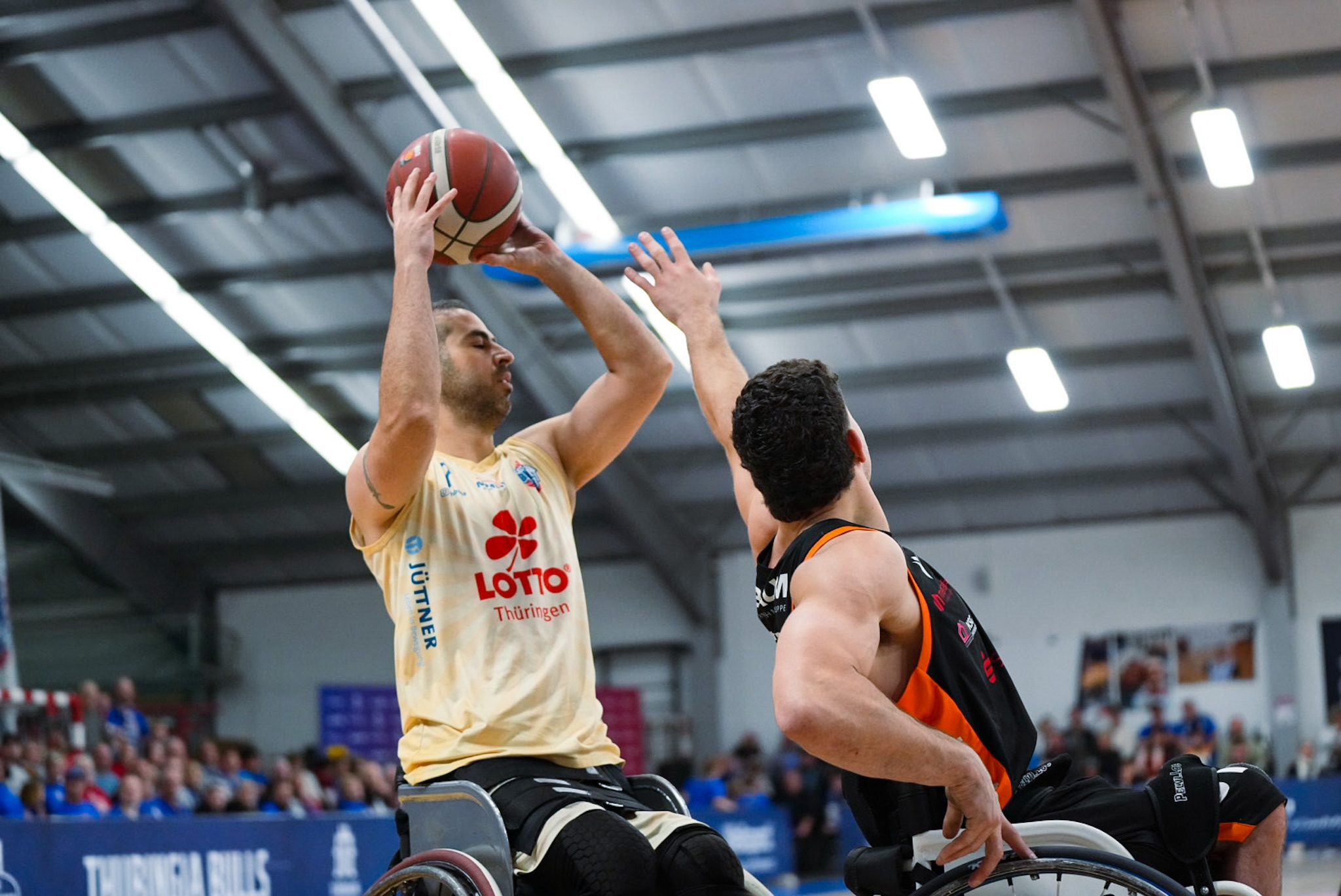 Am ersten Spieltag der Rollstuhlbasketball-Liga nach der Sommerpause war die Halle in Elxleben ausverkauft. Erst im Oktober waren die Europameisterschaften ausgetragen worden, weswegen sich der Saisonstart verschob.